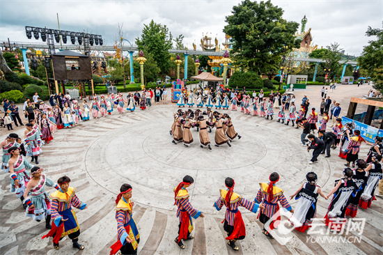 国庆期间,七彩云南•古滇度假区作为云南民族主题乐园的“标杆”,为游客们献上一场场精彩纷呈的民族文化盛宴,园区推出了系列民族演艺项目。活动汇聚了来自云南的多个世居民族的代表性歌舞节目。藏族的《迎宾舞》以热情奔放的节奏迎接八方来客;纳西族的《茶马踏歌》再现茶马古道的千年遗韵;基诺族的《基诺山的回响》与布朗族的《布朗采茶来》,则生动展现了独特的民族风情与生产生活场景。压轴登场的大型巡游演艺《盛世欢歌》由多民族演员方阵与精美花车共同组成巡游队伍,沿主环道行进,形成一道流动的风景线,引来沿途游客阵阵掌声与互动,现场洋溢着喜庆祥和的节日气氛。