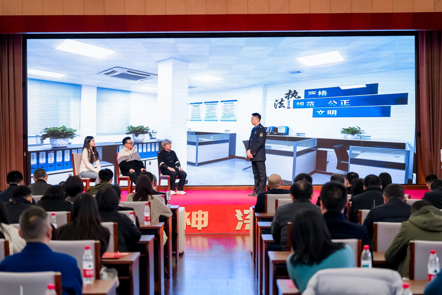 第十二个国家宪法日到来之际,12月3日,在华东政法大学举行的2025年长宁区宪法宣传周主题活动上,长宁区城市管理行政执法局带来的情景剧《方寸之间之电瓶车奇缘》,生动呈现了电动自行车乱停放带来的严重后果以及相关行为责任人需要受到的行政处罚。