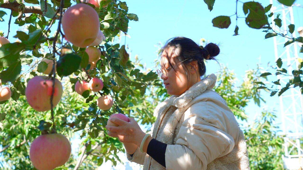这片果园的好收成,离不开合作社负责人刘振奎十余年的深耕。十年来,他凭借成熟的种植与管理经验,让合作社的苹果效益逐年提升;今年,他又主动学习新技术,掌握了倒伞型高光效苹果高产高效综合管理技术、无疤痕修剪技术,还推行“水肥一体化管理”,一系列科学举措不仅让苹果迎来丰收,更让果实的着色度、甜度等品质指标显著提升。“今年雨水充沛,果子长得特别好,产量特别高。最好的一棵树,今年能产800斤苹果!”刘振奎笑着介绍,为了提升品质,他们坚持晚摘,还加大了生物有机肥的用量,“咱们的苹果甜度好,现在每个苹果都是冰糖心。”