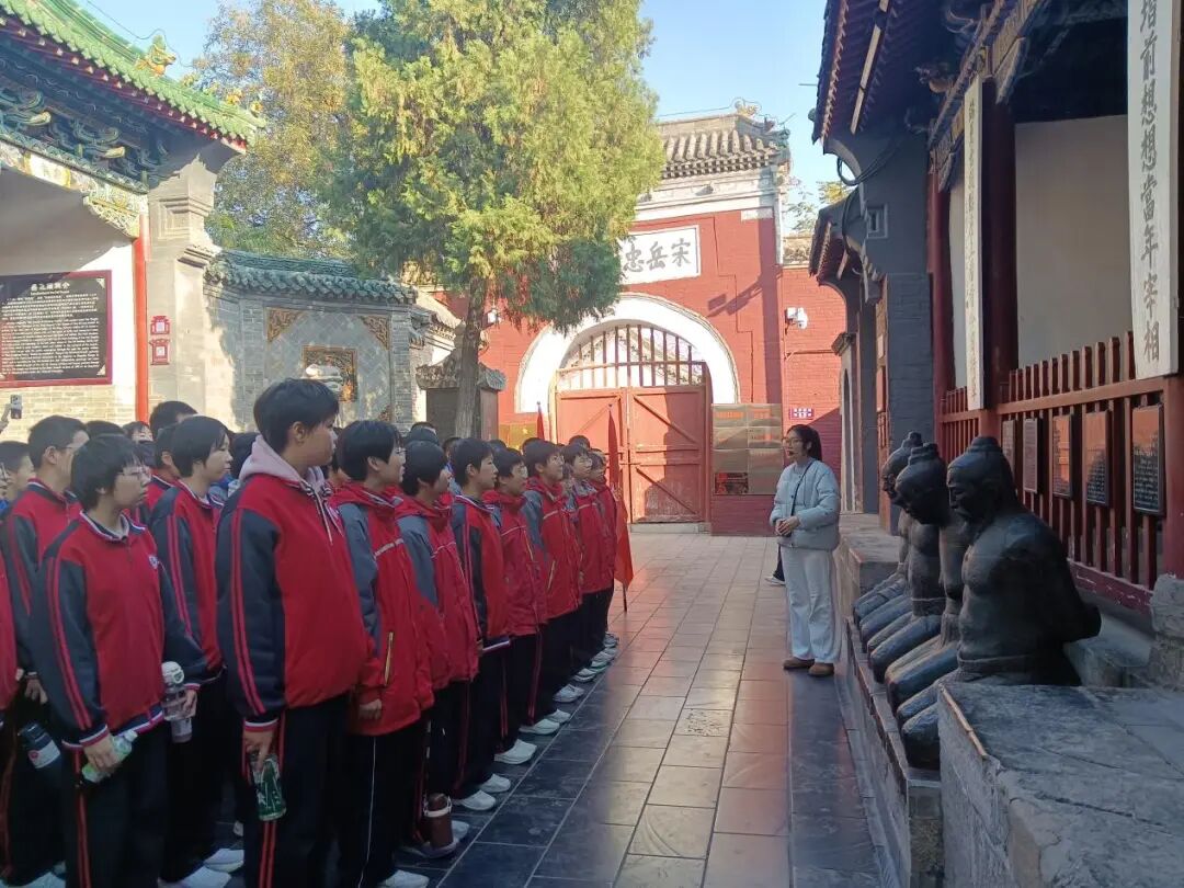 步入岳飞庙,青砖黛瓦、古树参天,瞬间将师生带回那段烽火连天、忠勇奋发的历史时空。同学们在“尽忠报国”刻石前驻足凝望,在斑驳碑文中读懂家国担当;在历史文物与实景讲述中,感受穿越时空的忠魂气节。