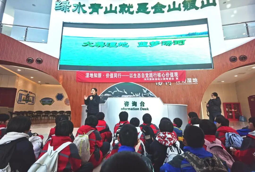 在专业讲解员的引导下,同学们了解了湿地的构成与功能,认知到这片“城市绿肺”对于气候调节与生物多样性的重要意义。“绿水青山就是金山银山”的理念,不再是口号,而是可触可感的现实。