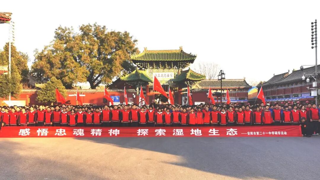 朔风轻起,万物静敛,正是初冬研学好时节。当课堂的边界被温柔打破,当知识的场域延伸至天地自然,一场融合思考、体验与感悟的旅程,于2025年11月20日悄然启程。安阳市第二十一中学八年级全体师生迎着晨风,踏上一日研学之旅,围绕“感悟忠魂精神,探索湿地生态”主题,在行走的课堂中完成了一场知识与心灵的双重奔赴。